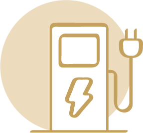 Zwei 11kWh-Ladesäulen direkt am Haus machen das Laden Ihres Autos unkompliziert: per Tankkarte, Kreditkarte oder PayPal.